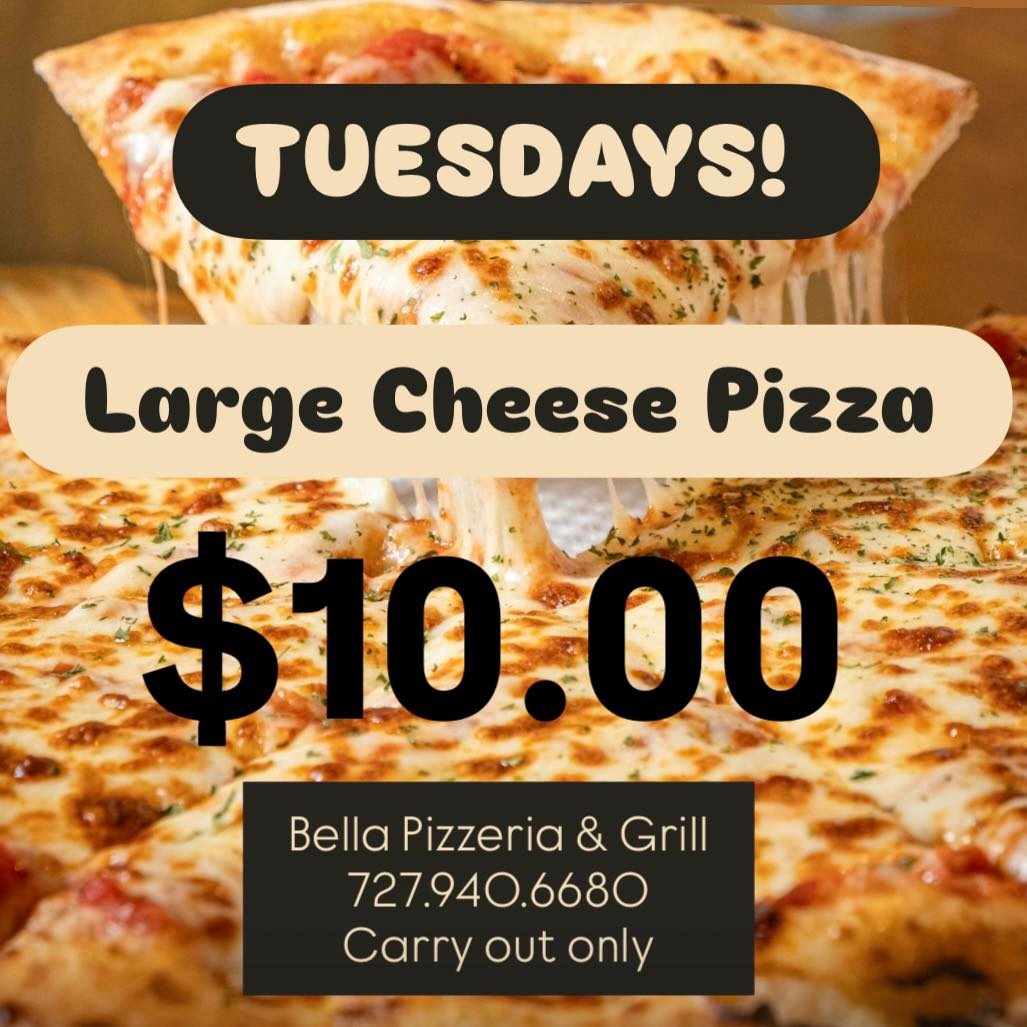 Tuesdays! Large Cheese Pizza $10.00! carry out only
